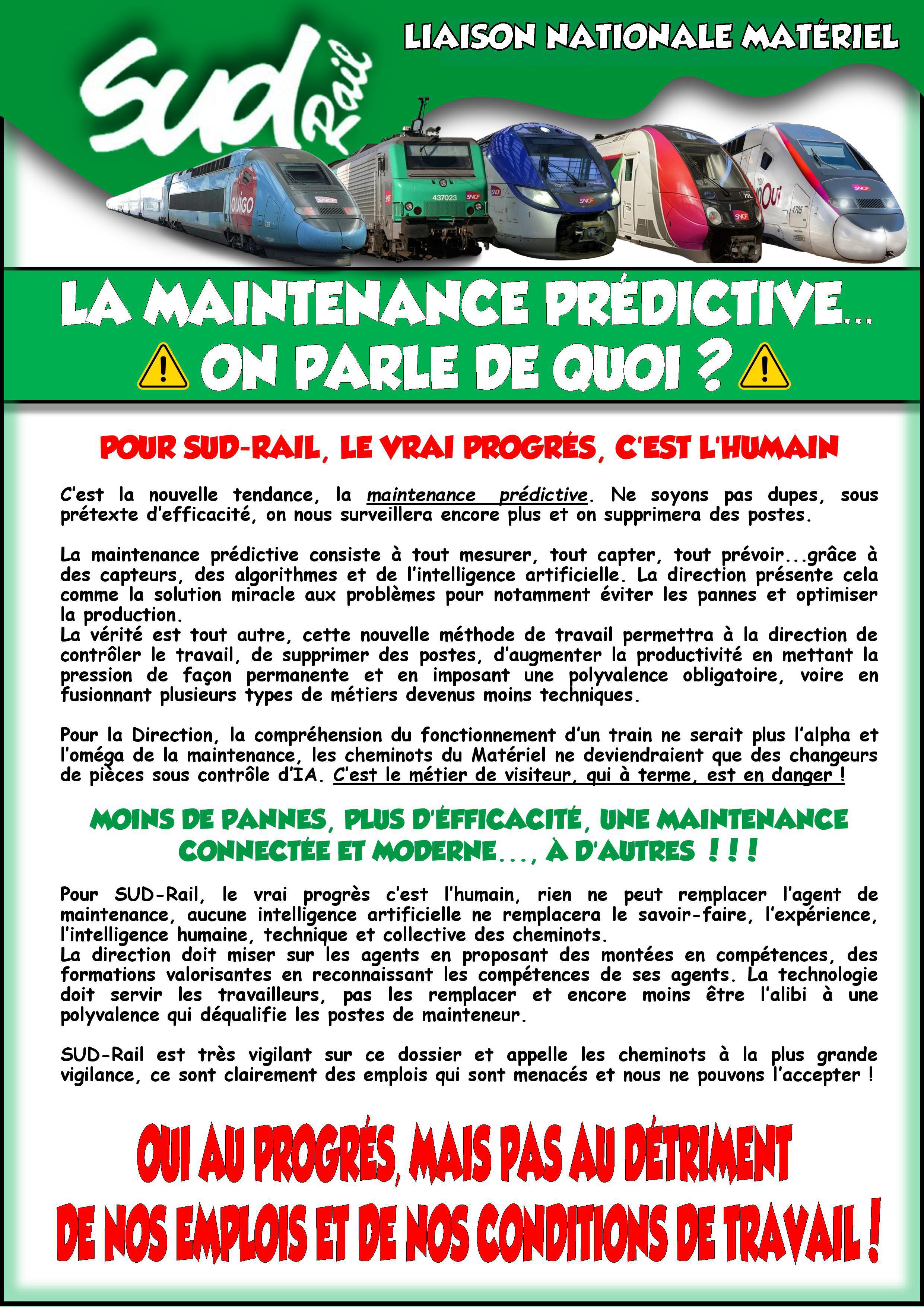 Pour la Direction, la compréhension du fonctionnement d’un train ne serait plus l’alpha et l’oméga de la maintenance, les cheminots du Matériel ne deviendraient que des changeurs de pièces sous contrôle d’IA. C’est le métier de visiteur, qui à terme, est en danger !