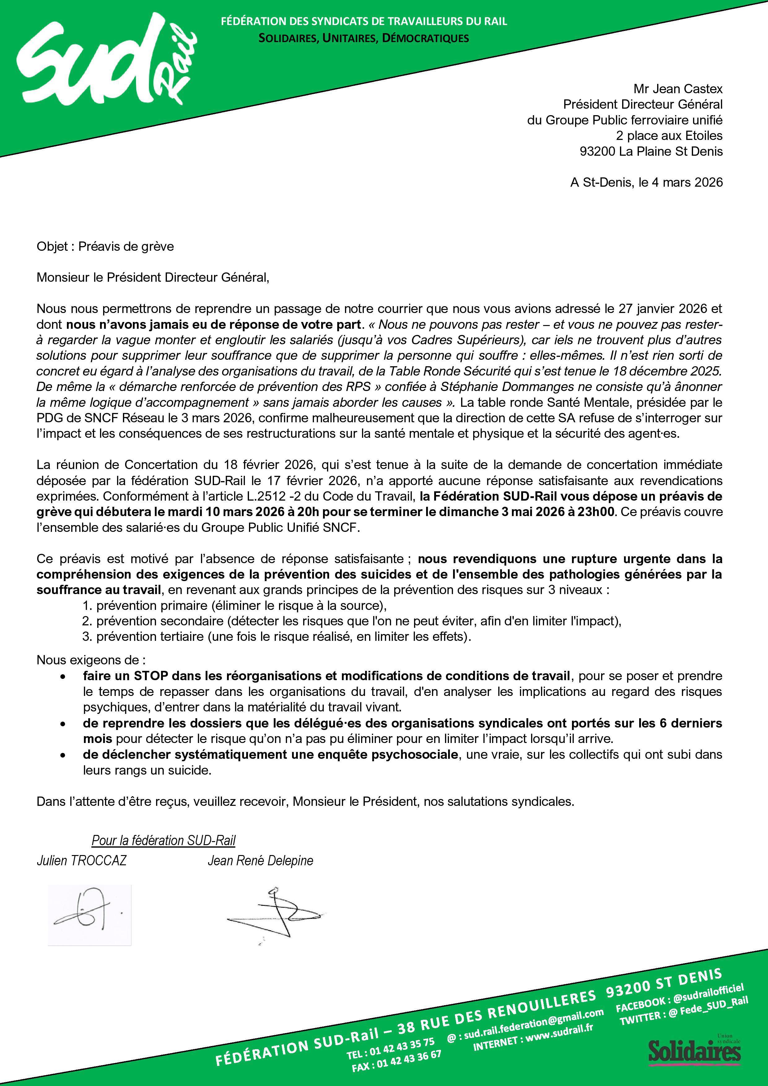 1 - Actualités revendicatives - Préavis de grève souffrance au travail