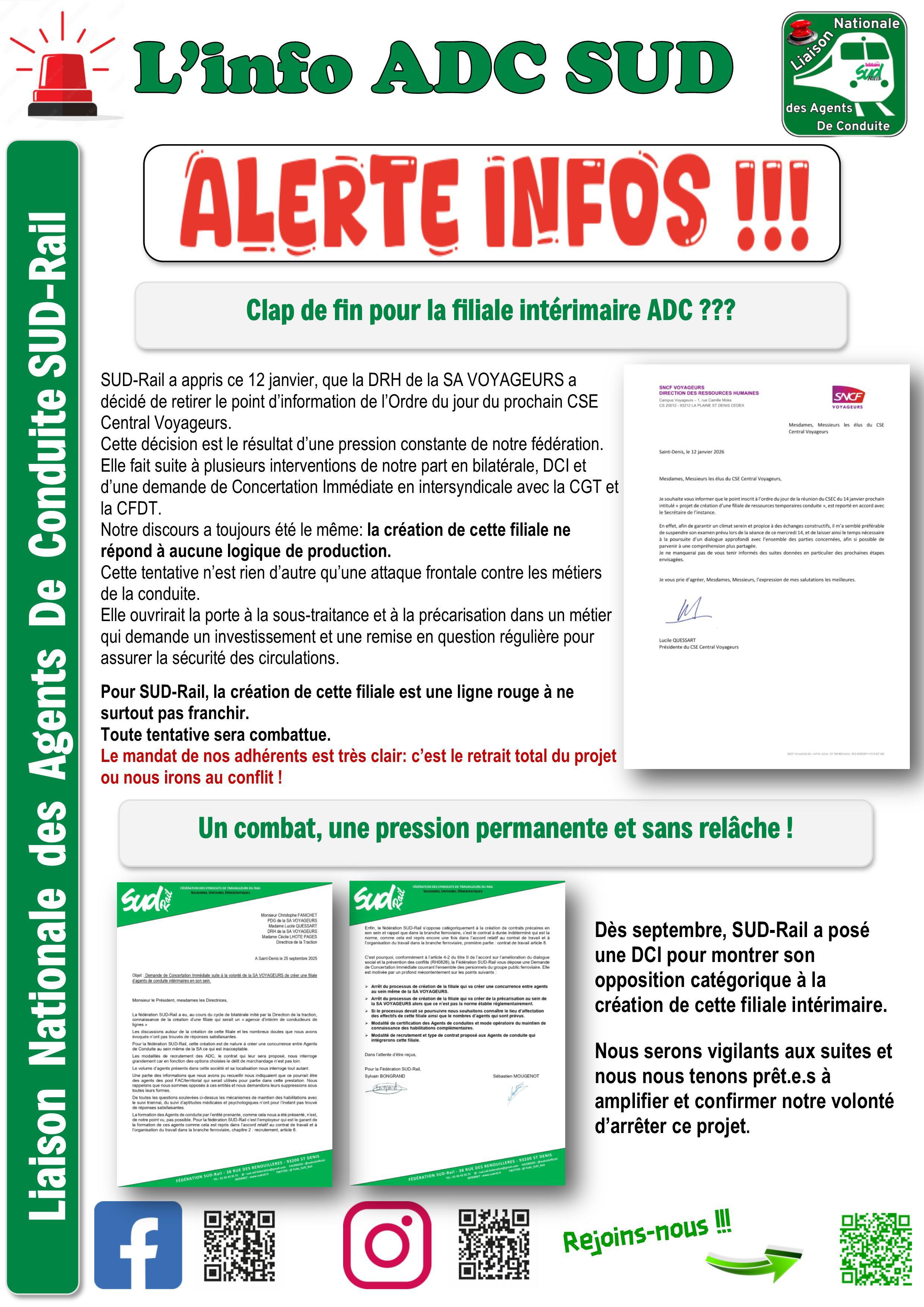 SUD-Rail a appris ce 12 janvier, que la DRH de la SA VOYAGEURS a décidé de retirer le point d’information de l’Ordre du jour du prochain CSE Central Voyageurs.