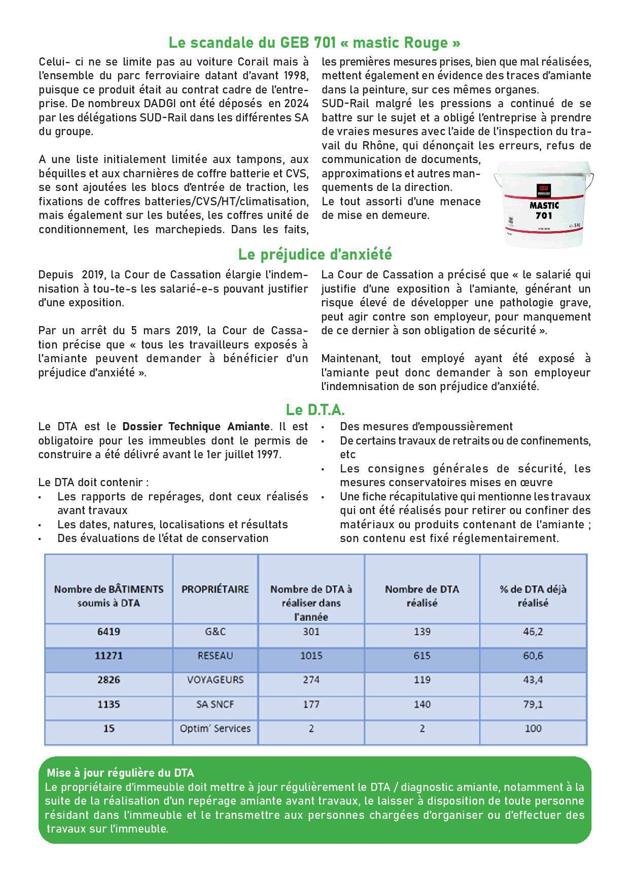 SUD-Rail reste attentif à tout sujet concernant l’amiante. Notre priorité est que l’ensemble des agent-e-s puissent travailler en toute sécurité.